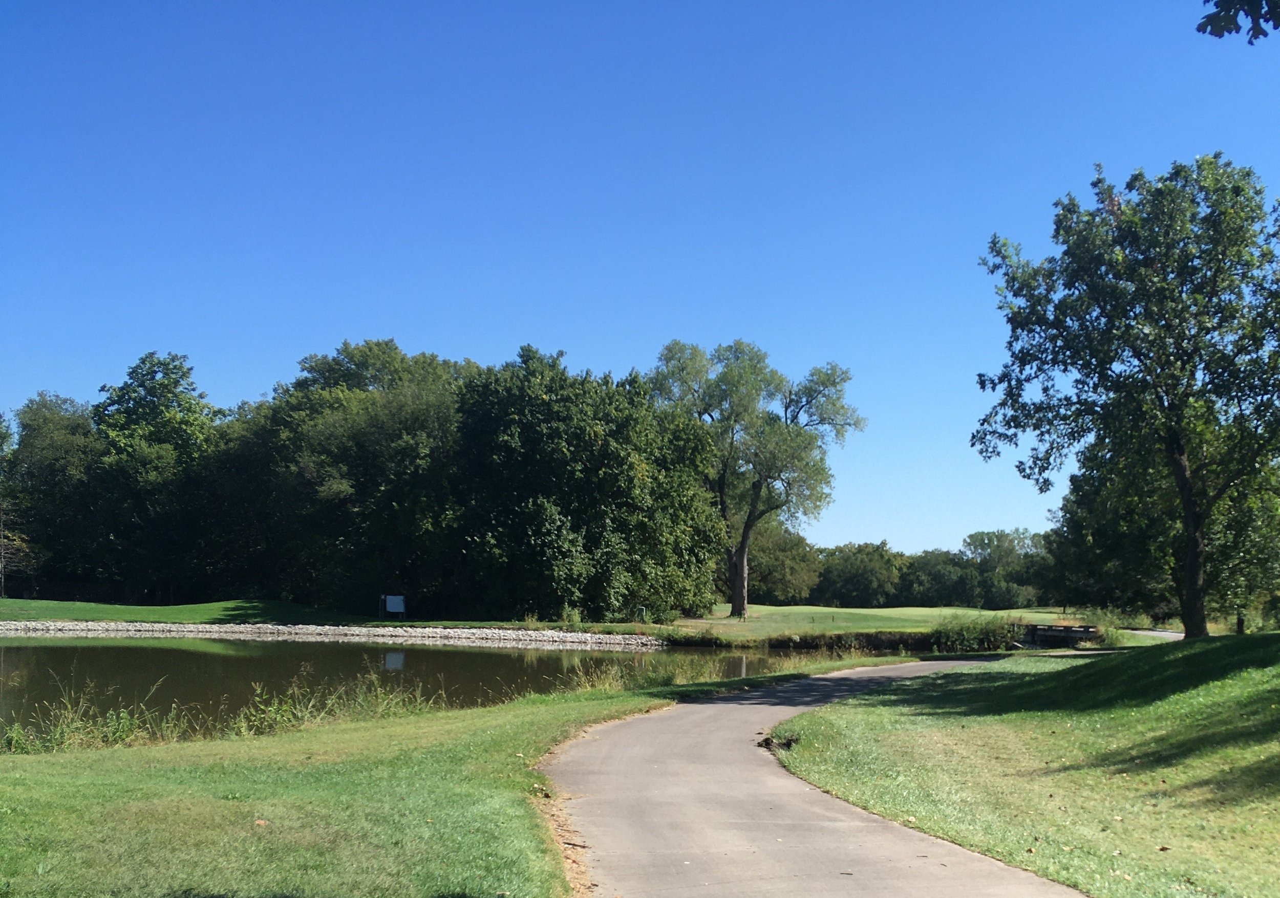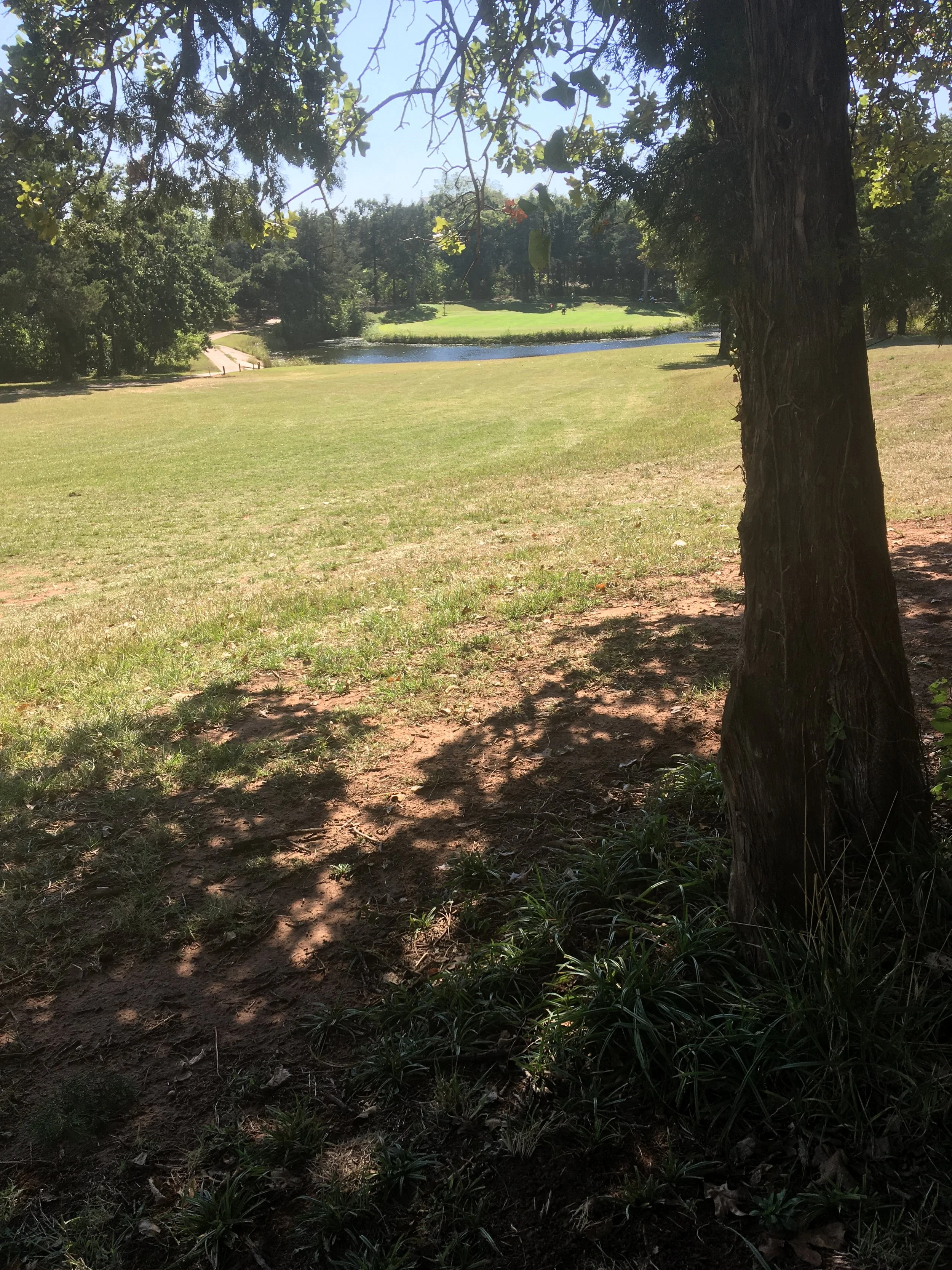 10.5 Site of my amazing shot around tree, over water, rolling it just past the pin at Cimarron National in OK