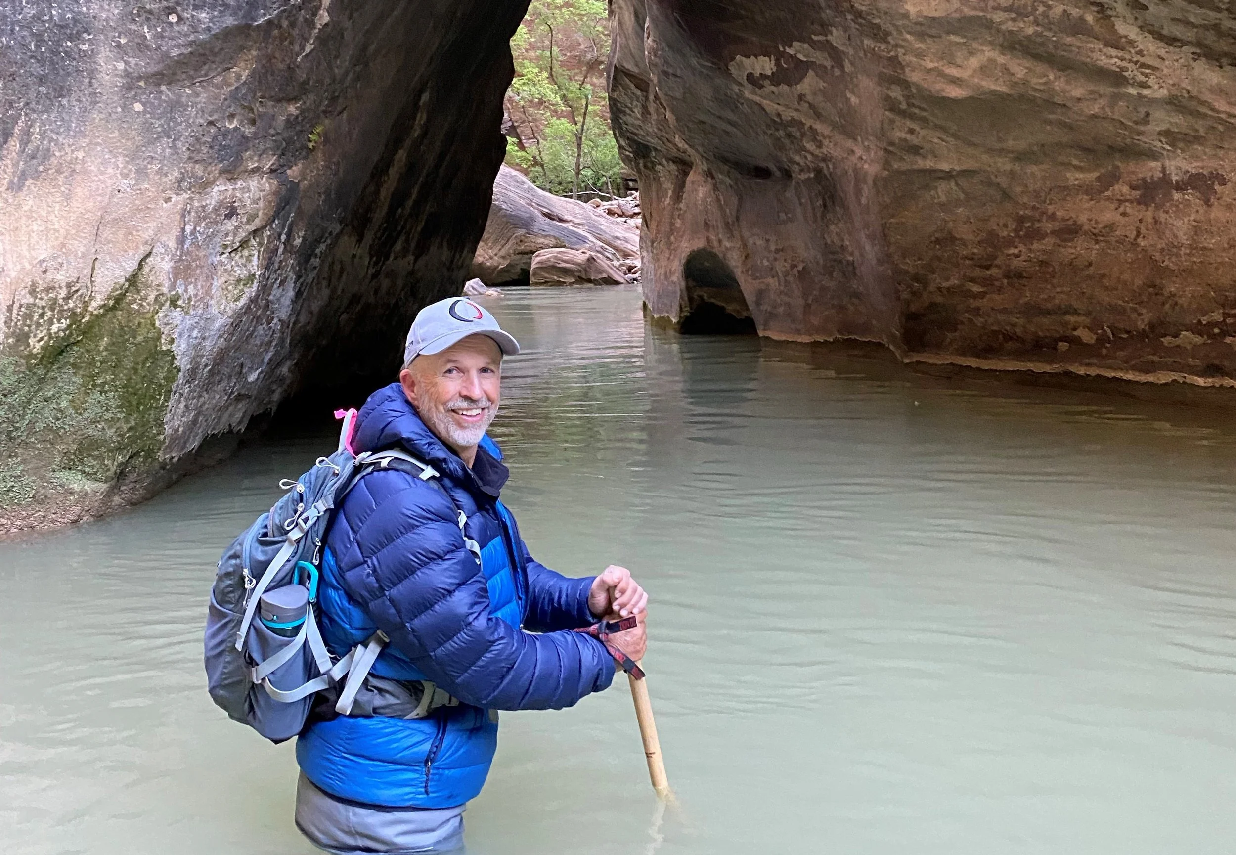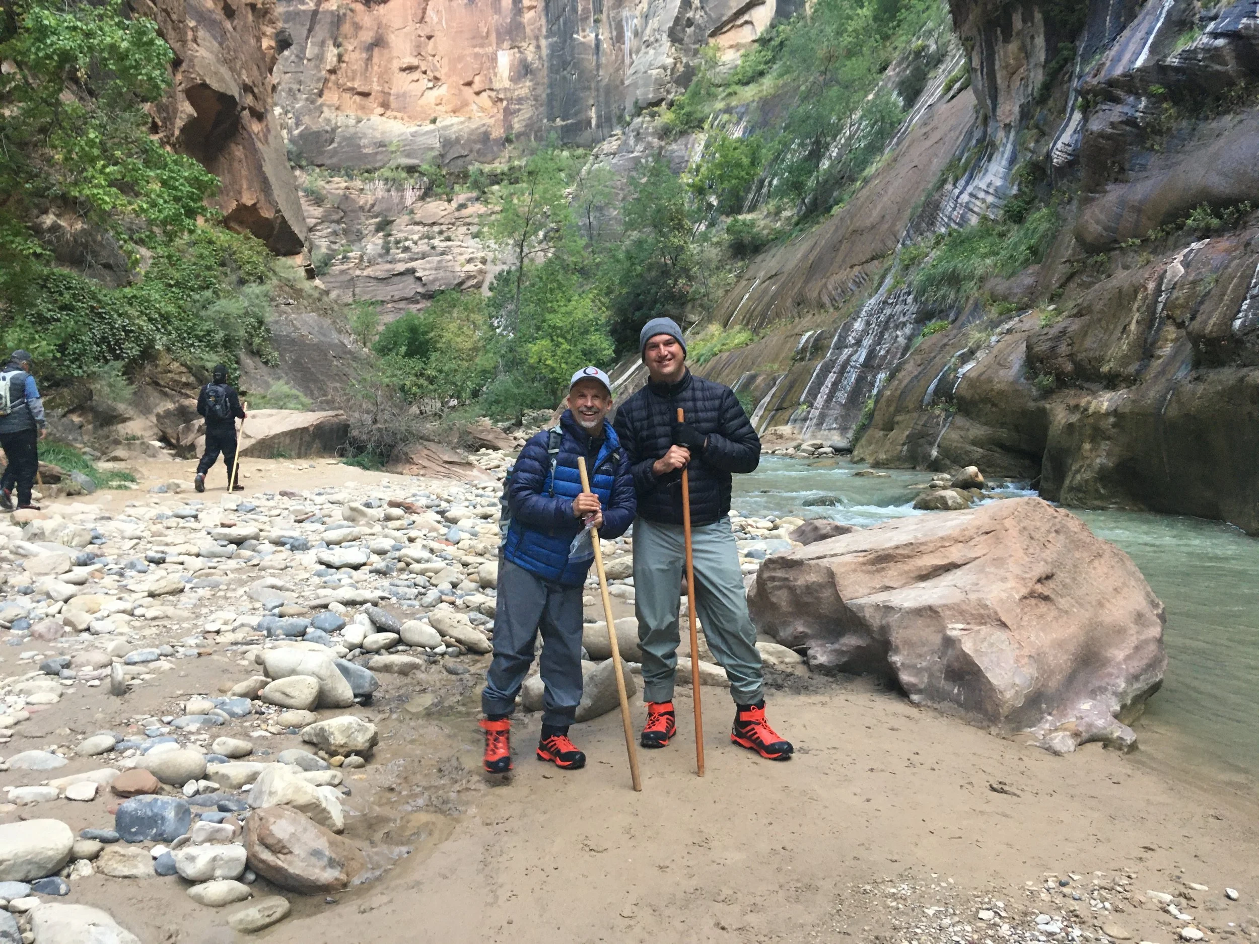 10.11 We caught the first shuttle and beat the crowds to enjoy the Narrows, a deep slot canyon of the Virgin River. No twisted ankles, not that my golf later in the day could be much worse!